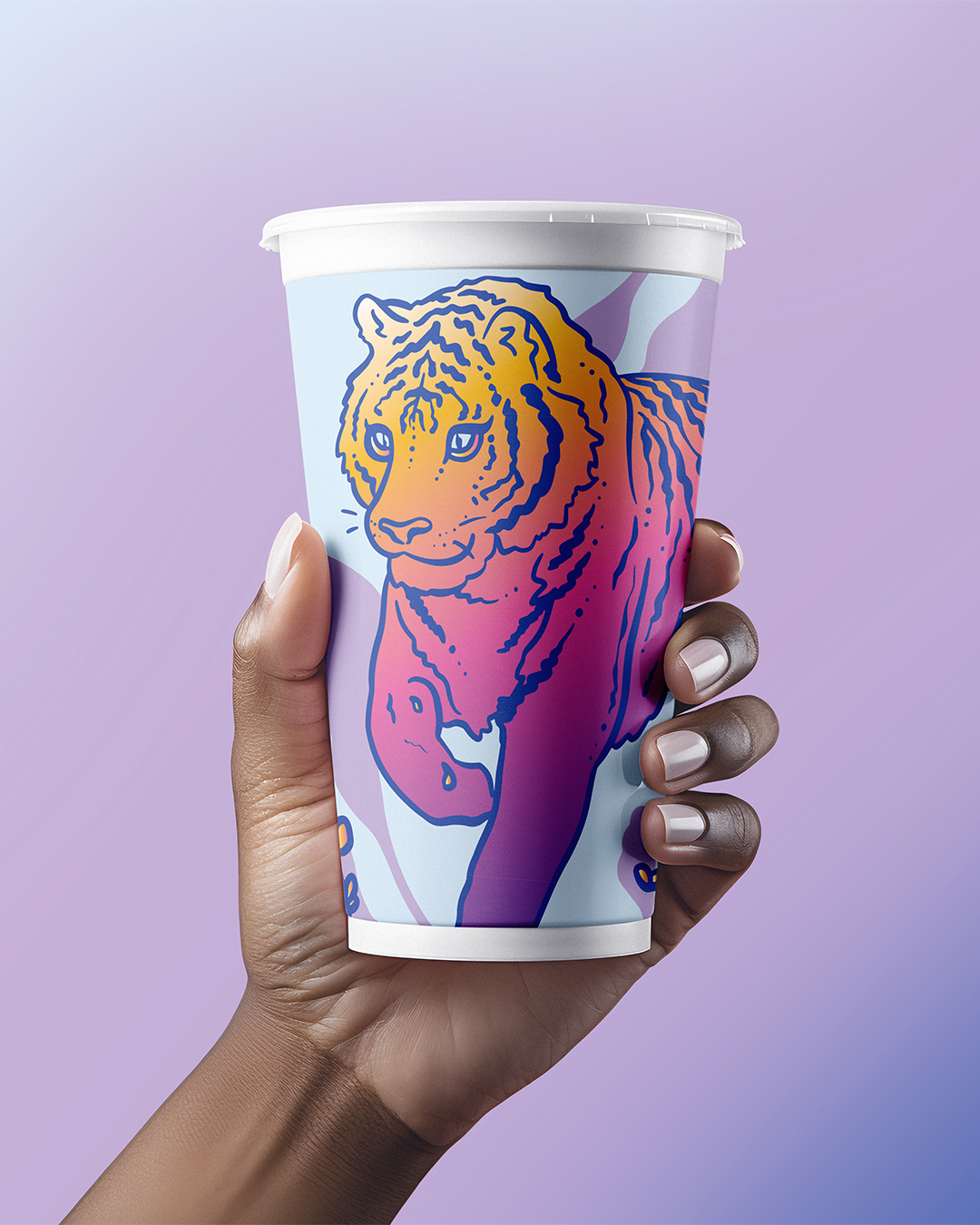 Utilizing Mothership Coffee Roaster’s existing branding, I illustrated and designed 3 separate coffee cup wraps, made for their 160z hot coffees!I utilized a motif of tigers, snakes, and trees to play off of the decor in their physical locations, also uniting it with their existing coffee bean packaging.